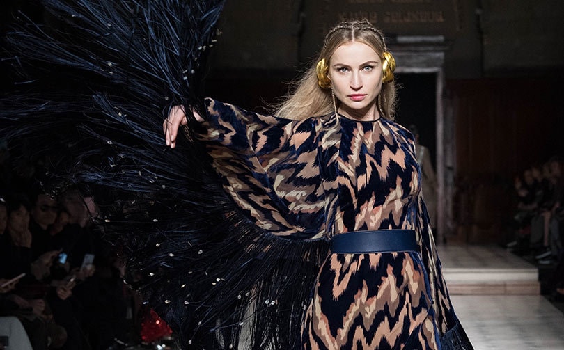 Greek mythology met couture in Ziad Nakad’s imagining of modern-day warrior princesses of Atlantis with a celebration of fierceness, ingenuity and compassion. An eclectic mix of tulle, silk, taffeta and chiffon in a myriad of hazy hues.