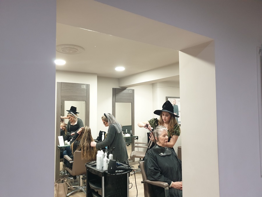 So we thought, this Halloween, the gals at the salon would not only make the grown-ups feel the warmth of our top notch salon, we’d bring joy to all the kiddies of Knutsford too, by taking part in the town’s annual pumpkin path, where a whopping 3,000 Halloween hungry children march the streets around the town’s top businesses to surprise them with their scariest Halloween trick or treats.