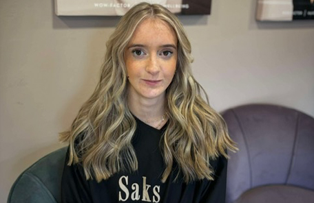 Meet Sophia, our fabulous stylist! Sophia has worked for Saks since she was 14, her speciality is balayage and blondes and making a client feel beyond confident. Her favourite hair icon is Miley Cyrus for always switching it up and her best Saks moment was attending the Saks awards and the cutting courses in the Saks Hub. Sophia loves getting into a really good series and also enjoys going out for long walks. A random fact about Sophia is that she’s very flexible and can even do the splits! Sophia loves working for Saks as, “there is always someone to ask for help - the whole team are always full of great ideas when I need them - they are all creative in their own way and they help me every day with making my own work and knowledge better!”